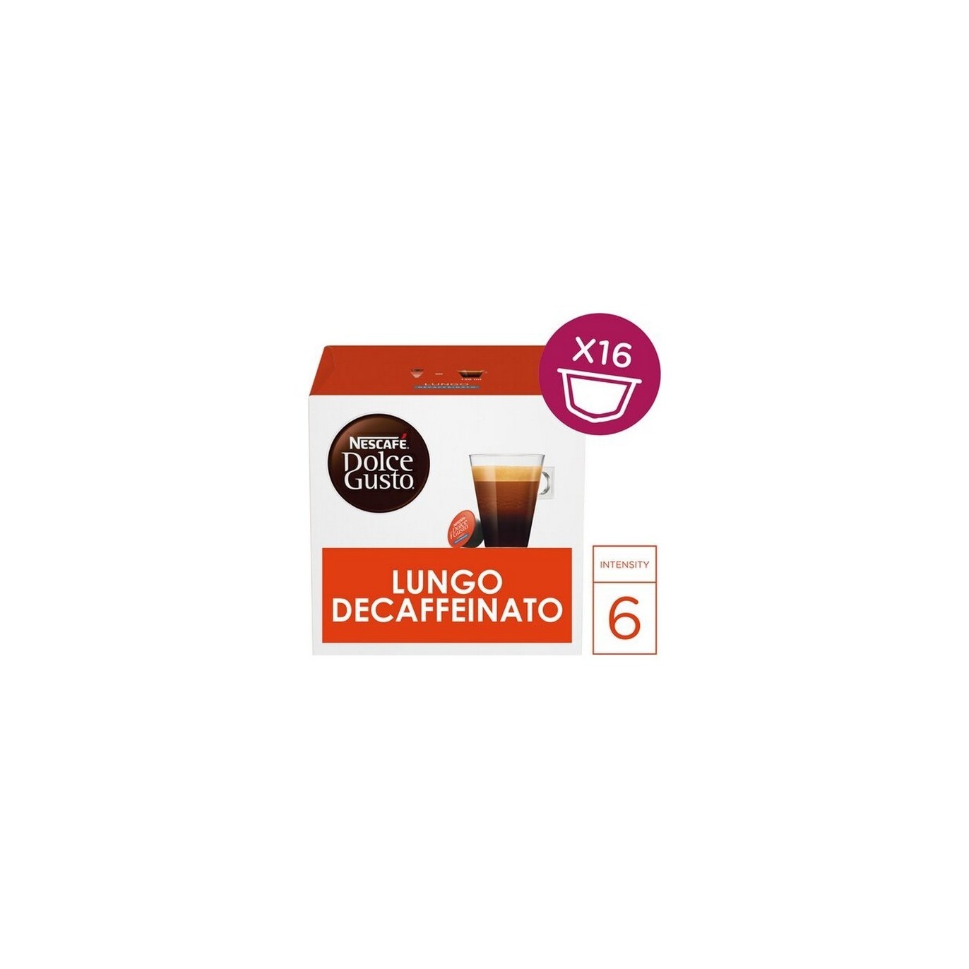 Nescafé vous propose ce Dolce Gusto Lungo Decaffeinato. Riche en arômes intenses comme un espresso, ce café prolonge le plaisir en un format allongé.