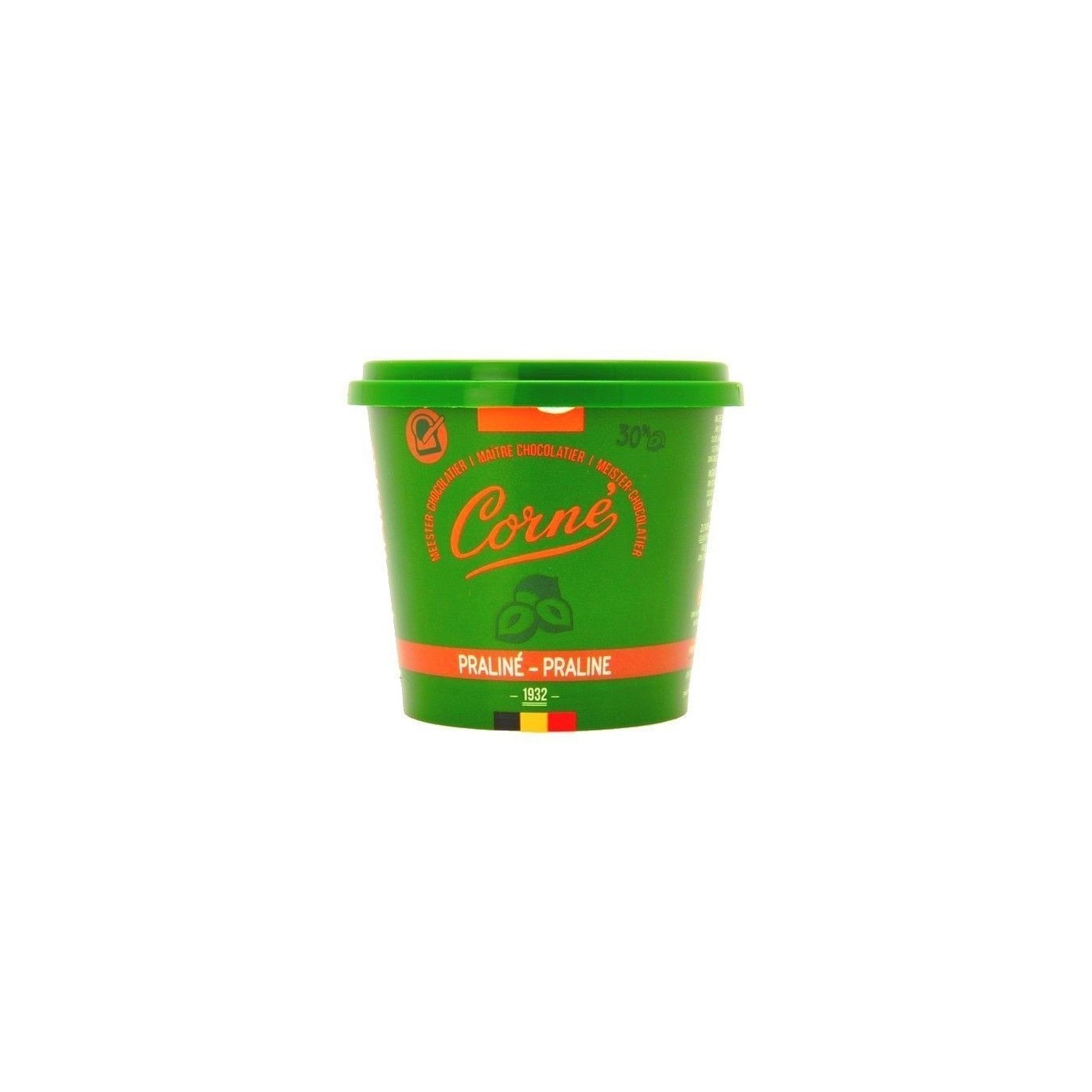 Corné propose une délicieuse et onctueuse pâte à tartiner au chocolat praliné contenant 30% de noisettes. Cette pâte à tartiner est 100% artisanal et ne contient pas d'huile de palme. Corné c'est la tradition du goût d'un véritable chocolat belge. Chaque pot contient 200 gr.