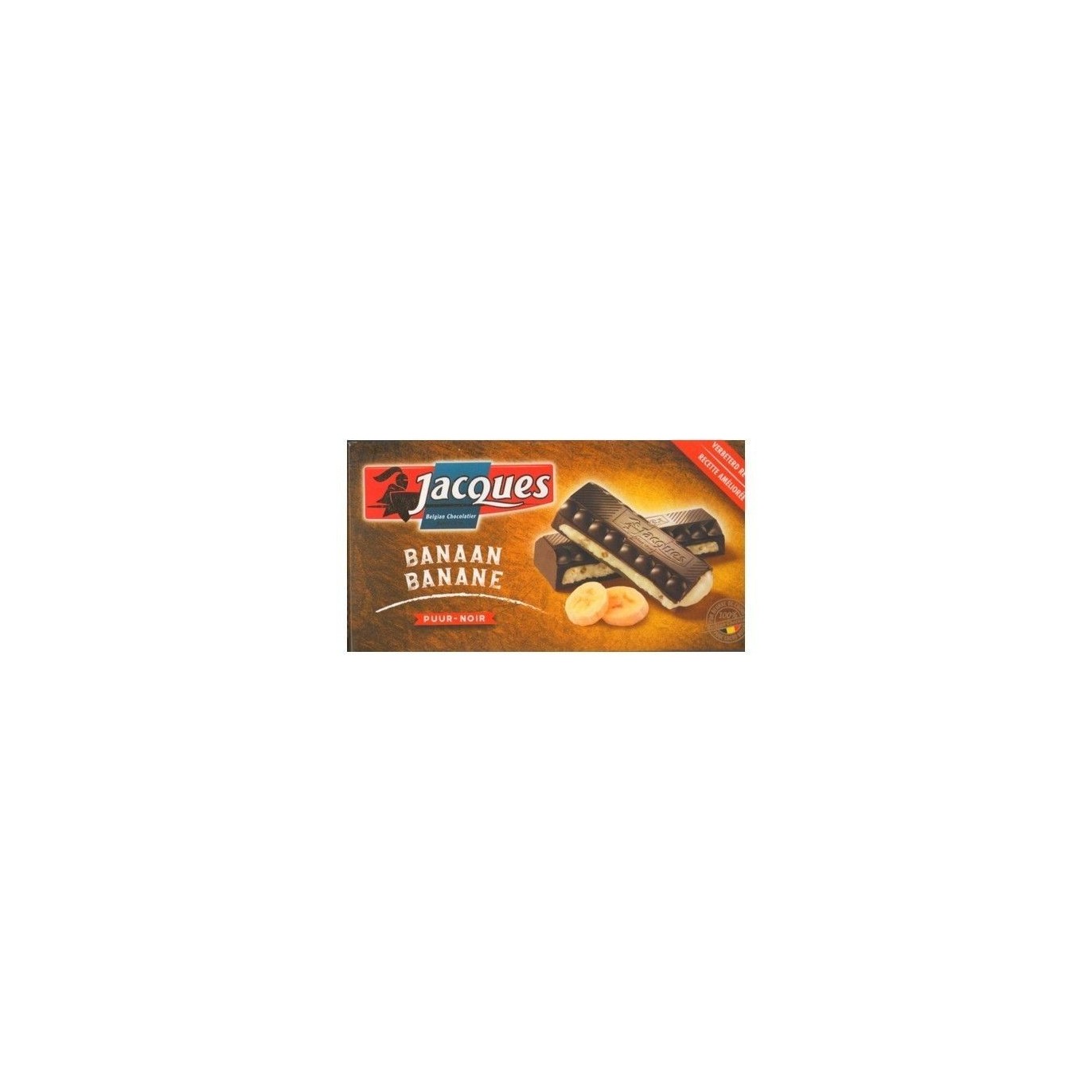 JACQUES c'est le mariage entre chocolat fondant extra fin et la crème confiseur à la banane avec des morceaux de banane. Tablettes de chocolat familiales classique à croquer quand on veut et sans chichis ! Chaque paquet contient 1 tablette de 200 gr.